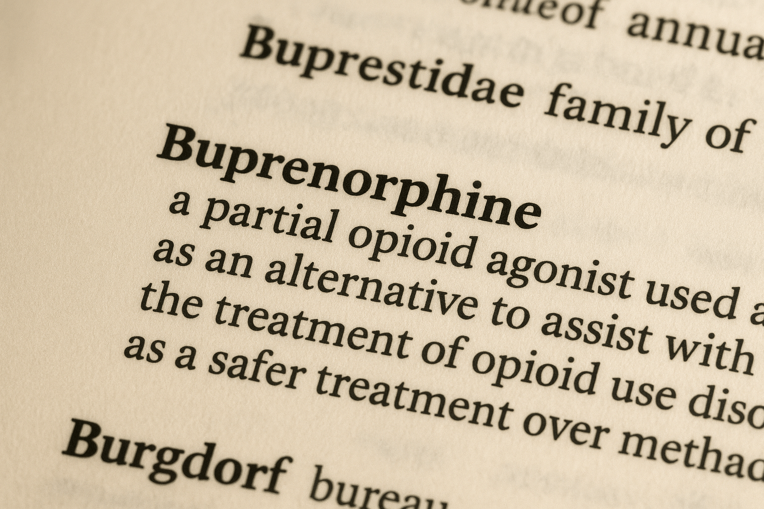 Suboxone is the brand name for the medication of Buprenorphine and Naloxone. There are many manufacturers and variations of the medication such as Subutex and Zubsolv. Sublocade is an injectable version of Buprenorphine that also has equal success rates and great benefits besides missing the ingredient of Naloxone. However, this version of the medication is not possible via online telehealth treatment and therefore not offered at Recover Clarity. As Sublocade is a great medication, there are many Advantages to Telehealth Treatment. It is the view of Recover Clarity that Suboxone is one of the best medications to assist with addiction treatment recovery from Opioid Use Disorder. The reason is that it is only a partial opioid agonist combined with an opioid antagonist. So, what does that mean? First, to learn about the Buprenorphine component in Suboxone.